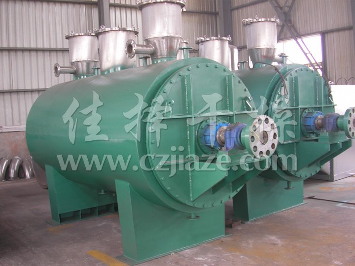 本機(jī)是一種新穎臥式間歇式真空干燥設(shè)備,濕物料經(jīng)傳導(dǎo)蒸發(fā),帶有刮板攪拌器不斷清除熱面上的物料,并在容器內(nèi)推移形成循環(huán)流,水份蒸發(fā)后由真空泵抽出。